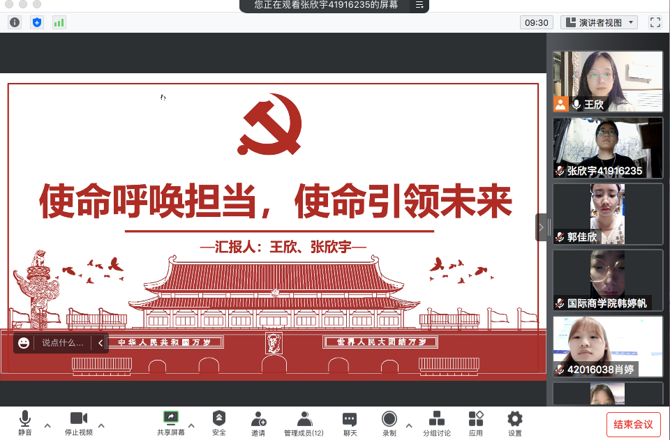 首先,张欣宇同志领学习近平总书记重要文章《新时代中国共产党的历史使命》,提出重点把握中国共产党在百年奋斗历史经验中为实现中华民族伟大复兴的三个深刻认识、三个“必须”以及“四个伟大”,强调在日常生活学习中要更好把握和运用党的百年奋斗历史经验并且更加明确中国共产党员的初心与使命。