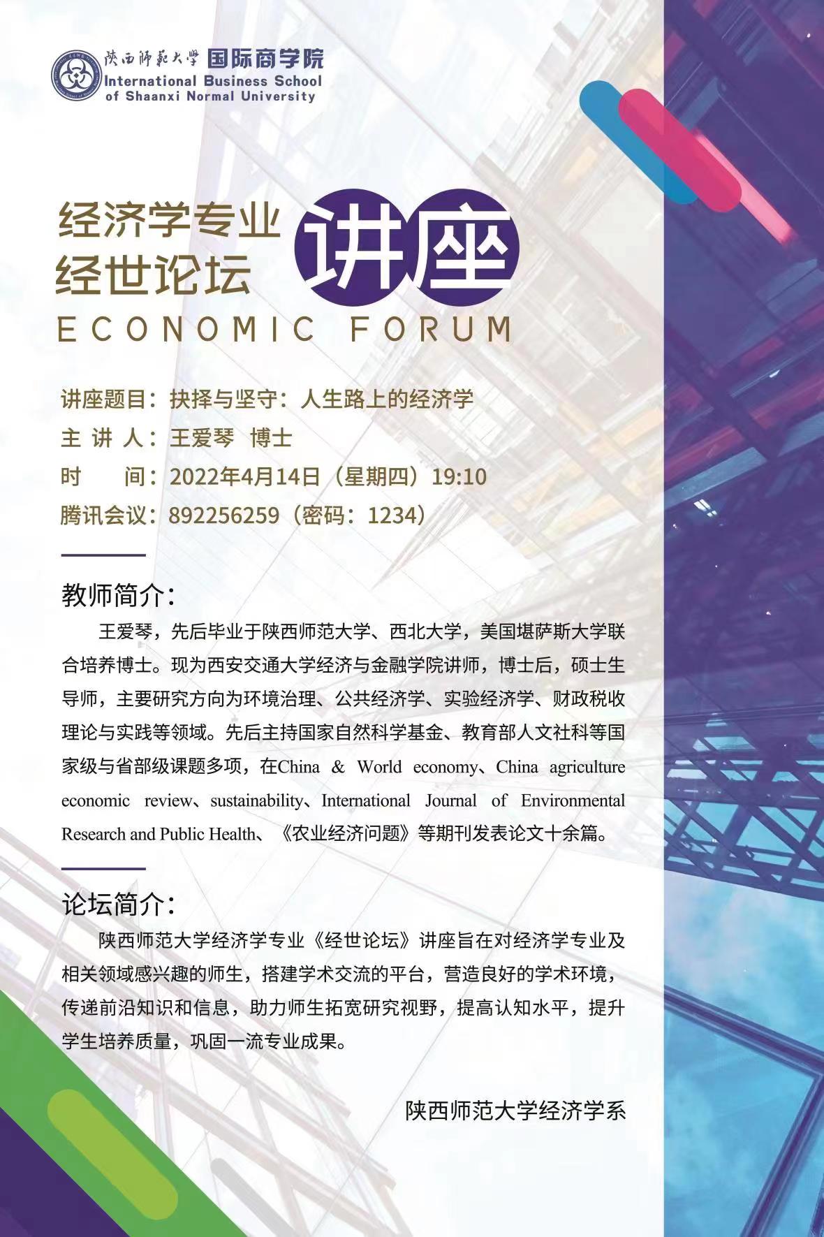 经济学专业经世论坛——抉择与坚守:人生路上的经济学