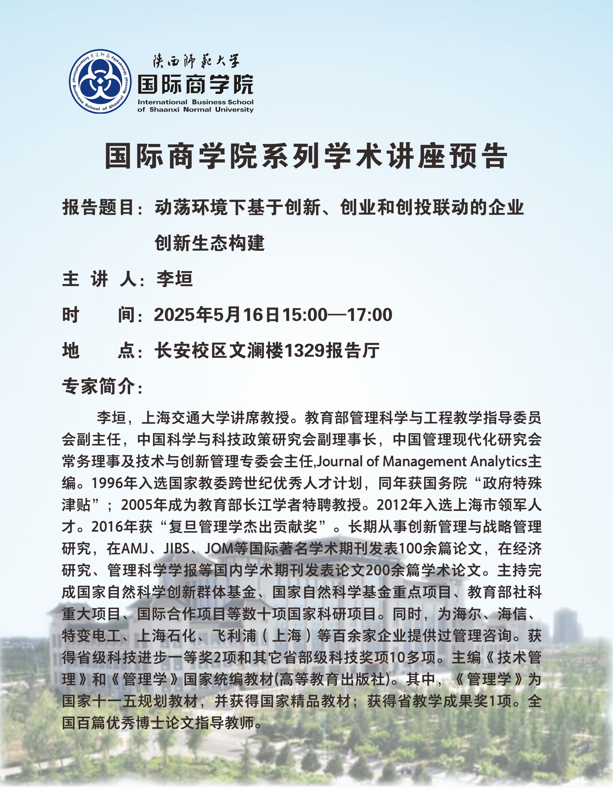 学术讲座预告——动荡环境下基于创新、创业和创投联动的企业创新生态构建