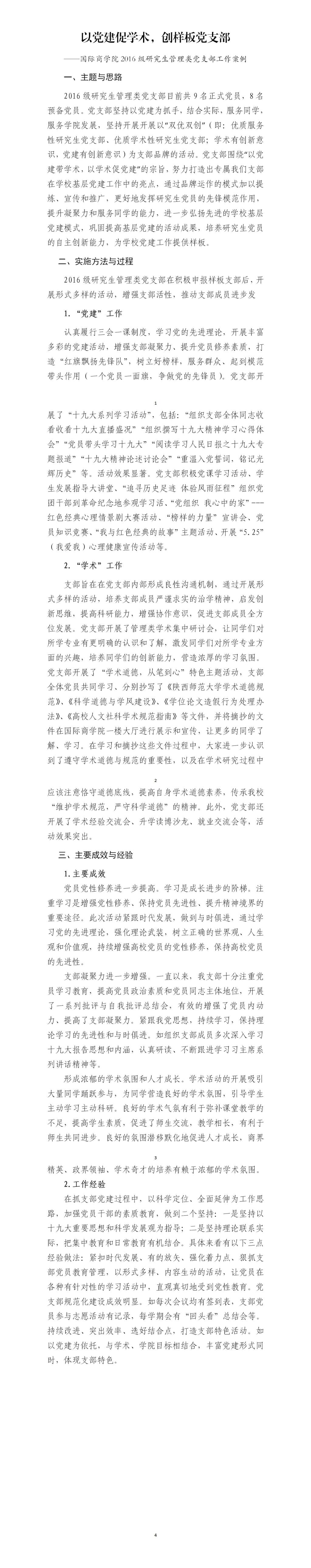 以党建促学术,创样板党支部——2016级研究生管理类党支部工作案例