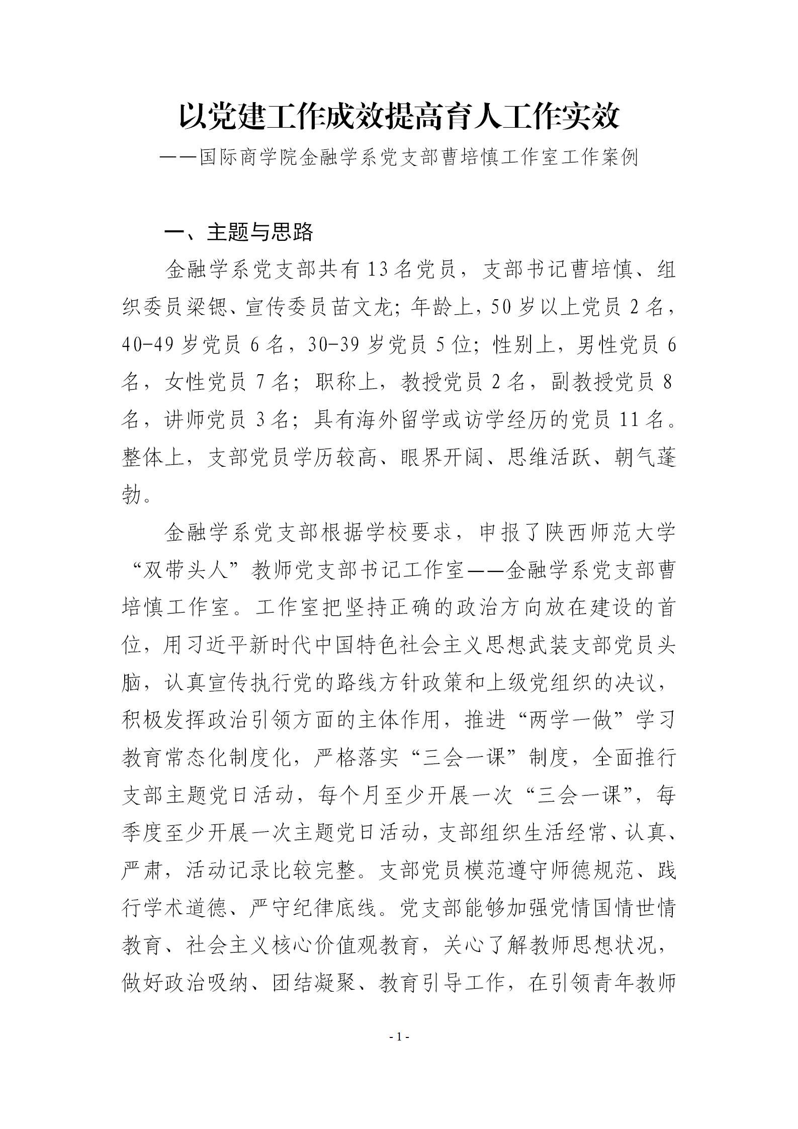 以党建工作成效提高育人工作实效——365英国上市集团金融学系党支部曹培慎工作室工作案例