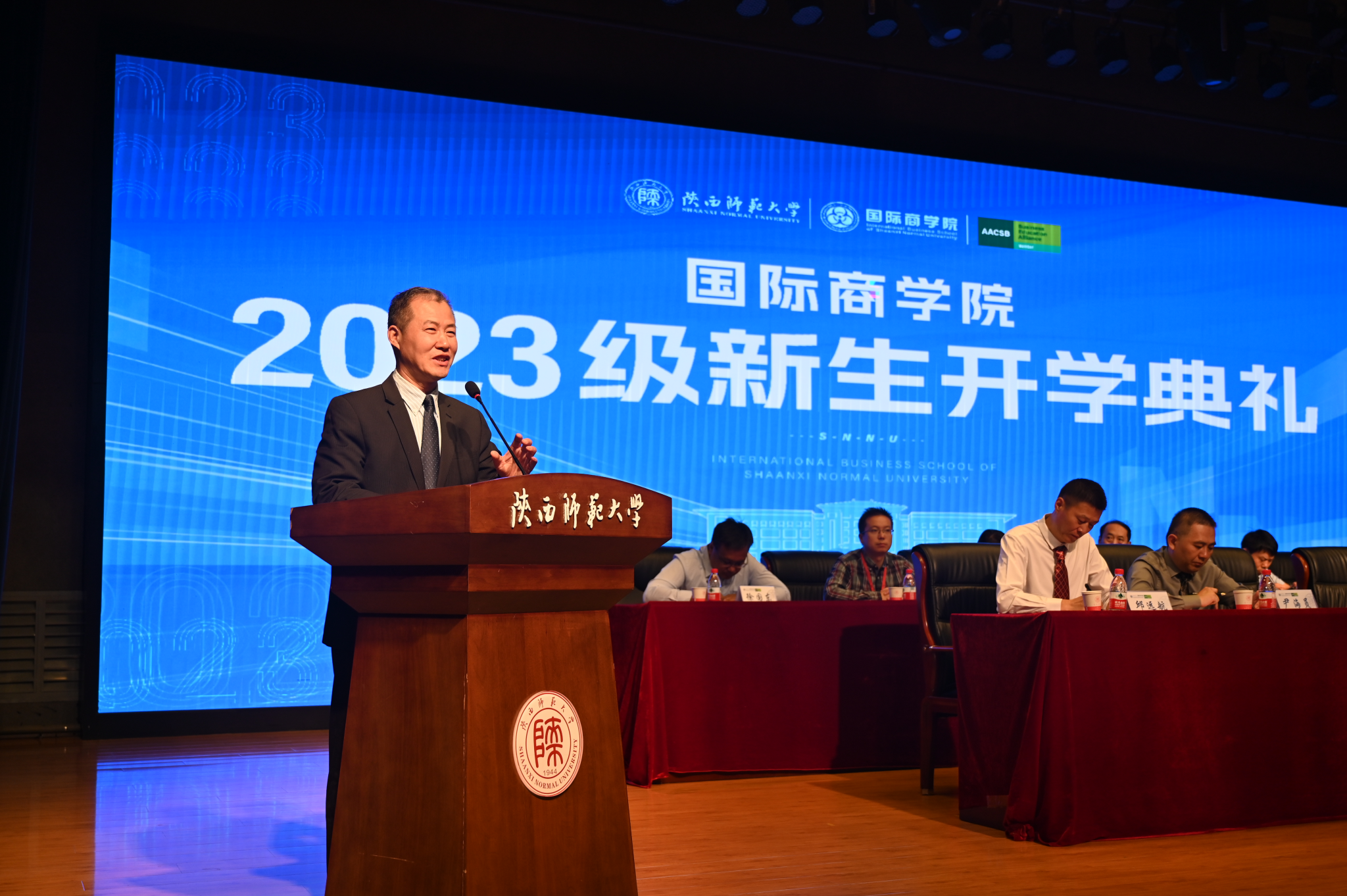 最后,经理雷宏振教授致辞。他向2023级新同学们加入365英国上市集团大家庭表达了诚挚欢迎。他勉励同学们,要养成严谨求实的治学态度,扎实积累,获得强大的知识储备;向身边优秀的同学学习,全面发展,攀登知识高山;提升内在素养,用乐观的心态、健康的体魄、顽强的意志书写青春的华丽篇章。