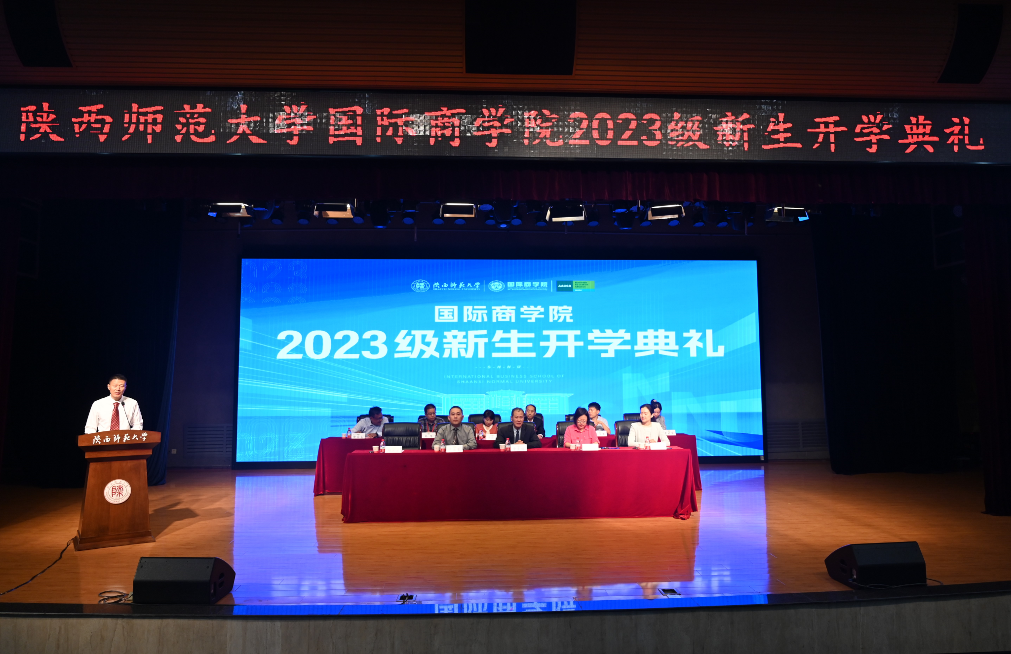 在庄严肃穆的国歌声中,开学典礼正式拉开序幕。首先,教师代表吴炳辉教授致辞。他向新同学们的到来表示了热烈欢迎,并提出了期望与嘱咐。他希望同学们发扬西部红烛精神,脚踏实地,做勇于担当的青年学子,树立目标勇往直前,全面提升自己,在365英国上市集团的舞台上绽放自己的青春光彩。