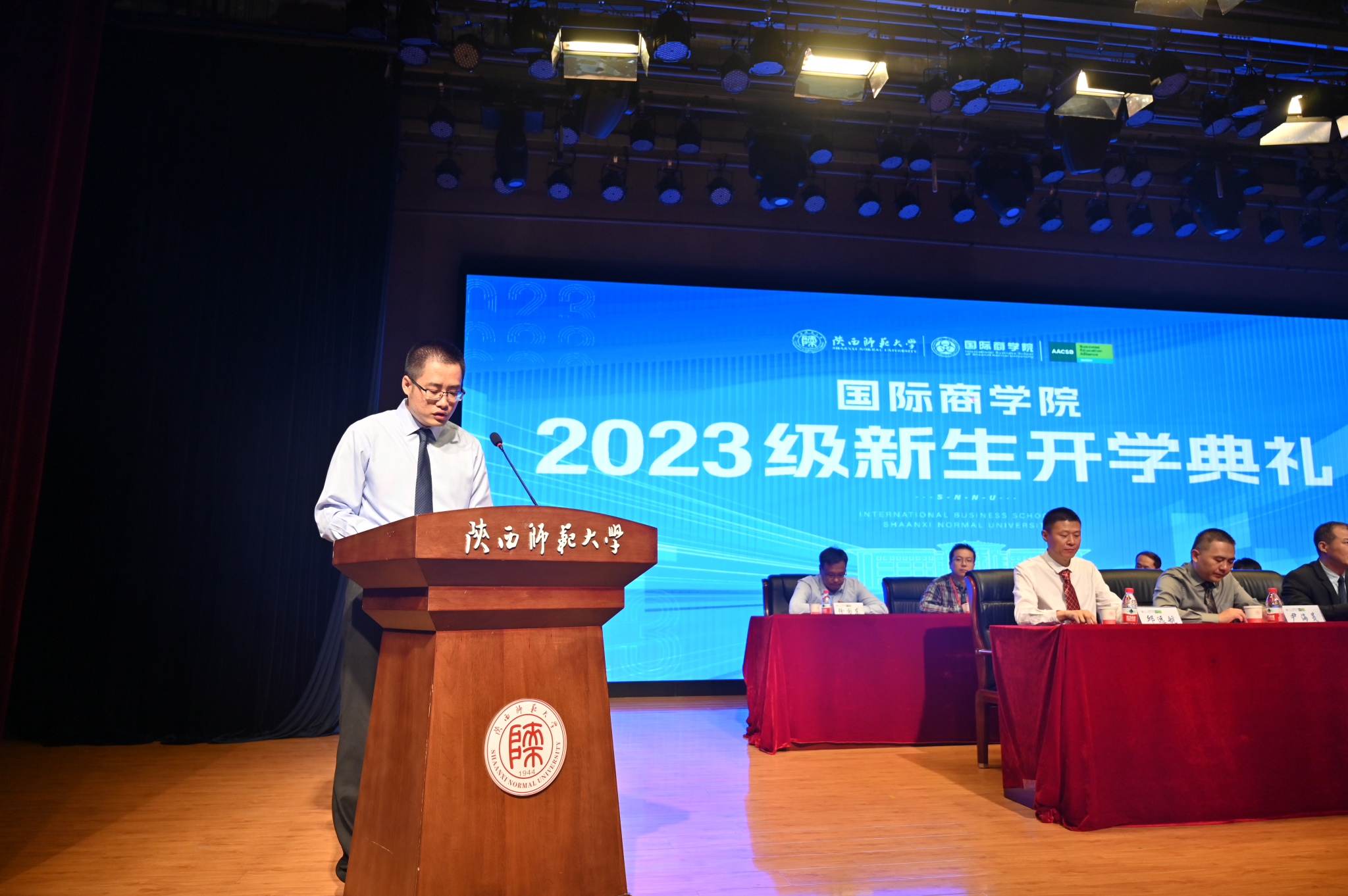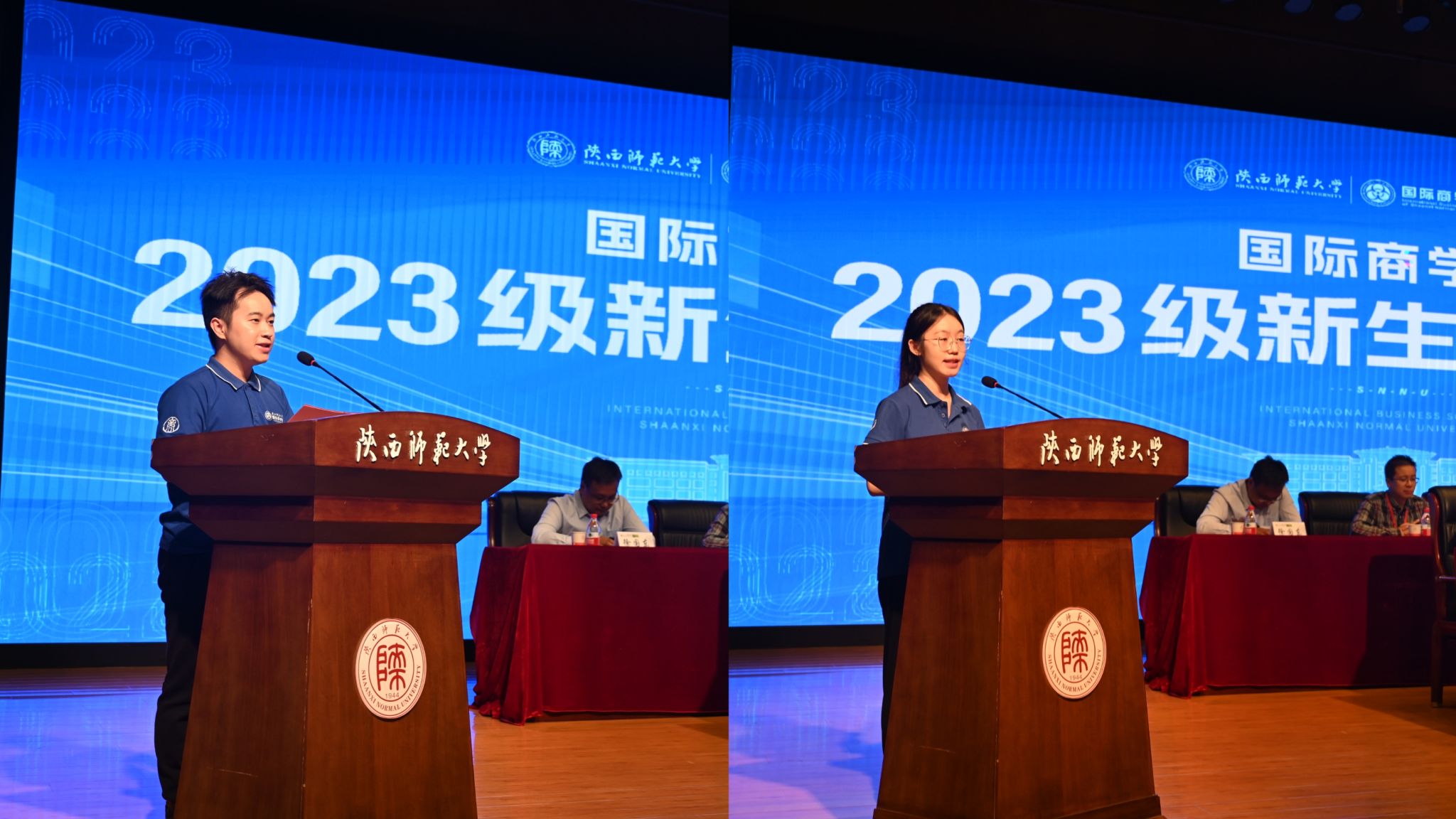 接着,在校生代表和新生代表依次发言。本科在校生代表、2020级经济学专业田鑫妮讲到:“迈过层层坎坷,随着目标的驱动,圆梦师大,愿同学们珍惜美好的校园时光,积极探索校园生活,制定规划,明确目标,以豁达乐观的心态面对即将展开的老员工活。在校研究生代表、2021级会计专硕黄锐与同学们分享了自己的科研经历,他希望同学们珍视课堂学习,积极参加学术活动,在竞赛中总结经验、提升自我,并寄语同学们在攀登知识高峰中追求卓越,在实践奋斗中谱写青春之歌。