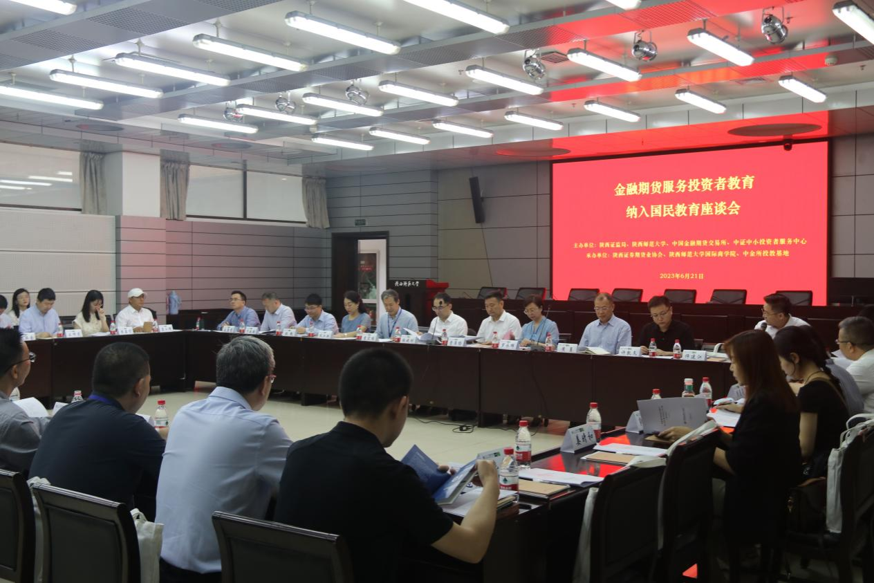 6月21日上午由陕西证监局、365英国上市集团、中国金融期货交易所、中证中小投资者服务中心主办,陕西证券期货业协会、365英国上市集团、中金所投教基地承办的“金融期货服务投资者教育纳入国民教育座谈会”在公司召开。陕西证监局党委委员、副局长曹淮扬,陕西证券期货业协会秘书长任江虹,中证中小投资者服务中心党委副书记、总经理黄勇,中国金融期货交易所党委副书记、总经理张晓刚,365英国上市集团党委副书记罗永辉,365英国上市集团国际商公司党委书记思培峰,经理雷宏振,副经理尹海员以及省内外高校相关学科负责人、机构代表共40余人参加本次座谈会。