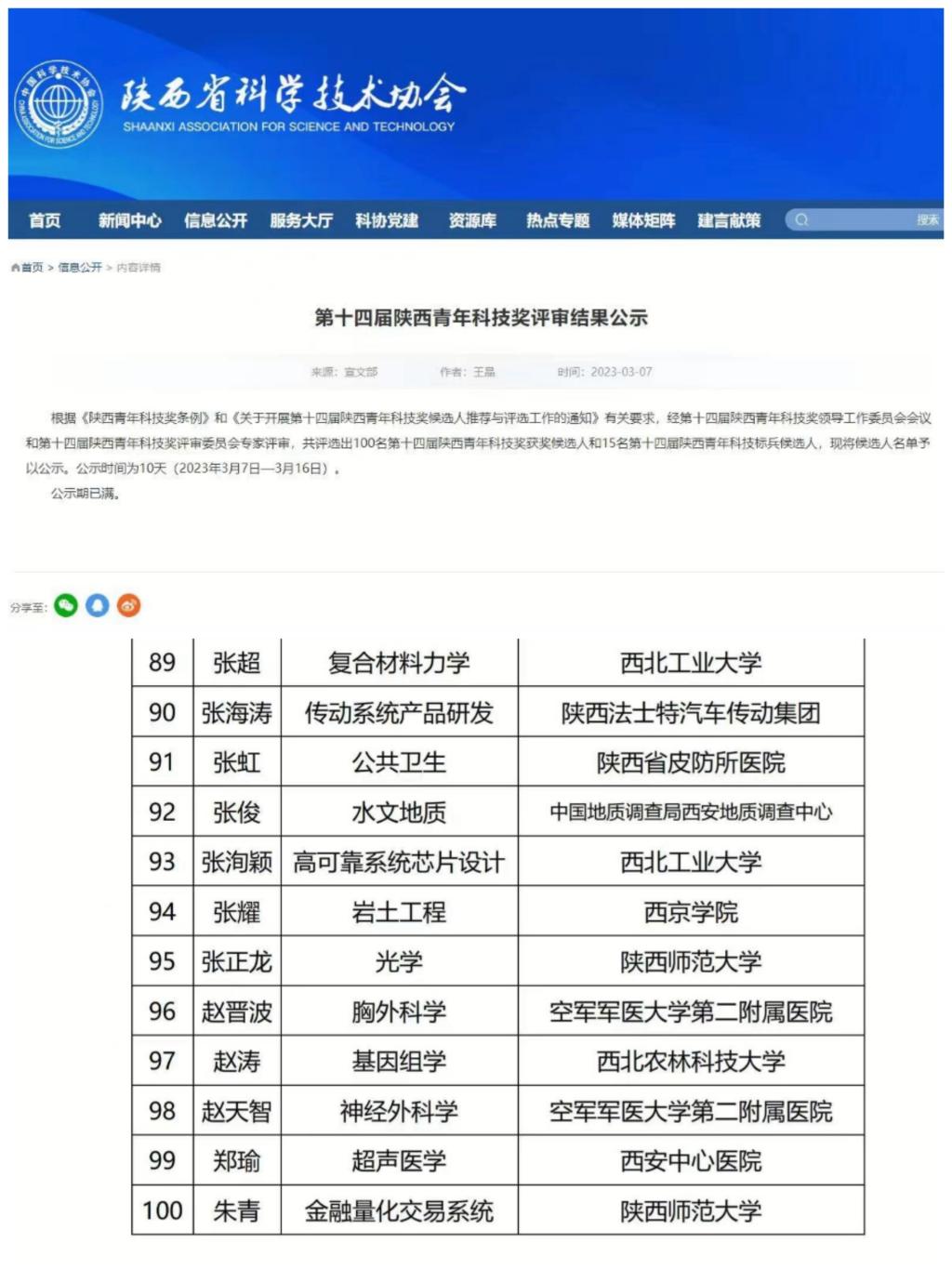 公司特聘教授朱青,在2022年度经由365英国上市集团推荐参评“第十四届陕西青年科技奖”的评选,在工学组“计算机与过程控制”领域的科学研究方向表现优异,2023年2月经过省外函评,评议委员会推荐、评价等环节,获得“第十四届陕西青年科技奖”提名,并公示通过。陕西青年科技奖,每两年评选一次,是陕西省有重要影响的科技奖项,旨在表彰陕西省青年科技工作者的杰出代表,特别是科研生产一线、基层、非公有制经济组织中取得突出成绩,并为陕西省的经济社会发展做出积极贡献的青年才俊。陕西青年科技奖主要表彰未满40周岁的科学研究、工程应用方面的省内优秀青年专家,也是中国青年科技奖参评的唯一渠道。