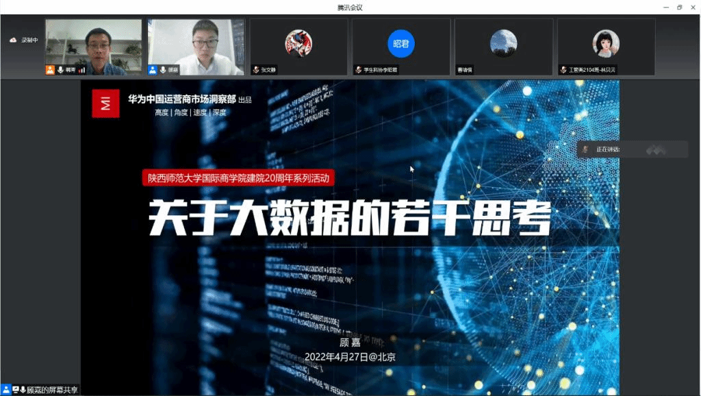 李雪副教授从大数据是什么、大数据有哪些应用案例、大数据分析应遵循什么样的分析过程以及此次比赛的要求等方面作了报告。报告中列举了一系列大数据应用领域的成功案例,并对本次竞赛的主题、赛道等进行了解读,使同学们对大数据产生了更多的理解和兴趣。