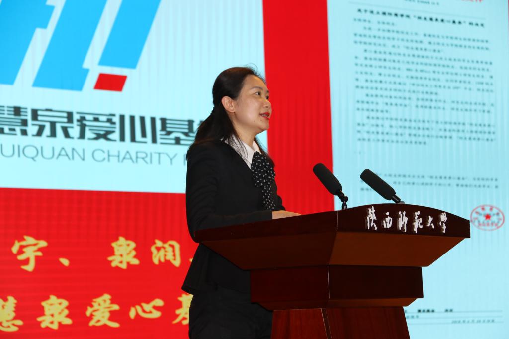 经理雷宏振致答谢辞。他对一直以来支持和帮助公司发展进步的公司、各界员工、全院教职工表达感谢,并对公司未来的发展目标作进一步阐述。他诚挚邀请广大员工积极参与公司文化建设,依托“慧泉基金”,打造员工交流网络,创造惠及员工和在校员工发展的新机遇,与广大师生和员工一起共同推动公司更好发展。