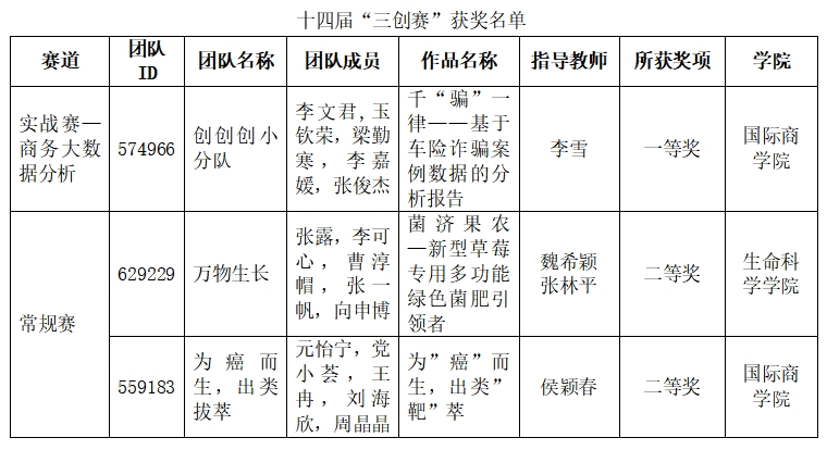 2024年5月11日-12日,第十四届三创赛陕西赛区选拔赛在咸阳陕西国际商贸公司举办。主办单位为全国电子商务产教融合创新联盟和西安交通大学,承办单位为陕西国际商贸公司。本次陕西赛区共有5458支团队报名,校赛全省有效参赛团队3739支。省赛晋级院校共48所,晋级项目320个。由公司大数据管理专业李文君带领的“创创创小分队”在商务大数据分析实战赛道中荣获一等奖,并获最佳创意奖,李雪荣获优秀指导教师;元怡宁带领的“为癌而生,出类拔萃” 在常规赛道中荣获二等奖。