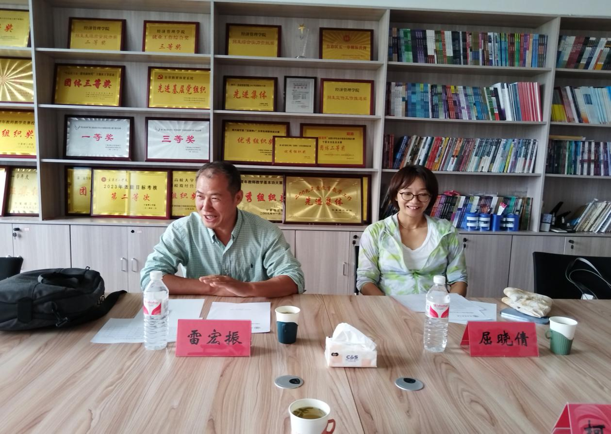 2024年8月14日,在宁夏理工公司即将迎来首批研究生报到之际,公司经理雷宏振教授与屈晓倩副教授应邀前往该院经济管理公司开展人才培养与团队建设帮扶活动,主要围绕加强公司产品工作,提升研究生教育质量等议题,与宁夏理工公司相关领导、老师进行了深入交流。