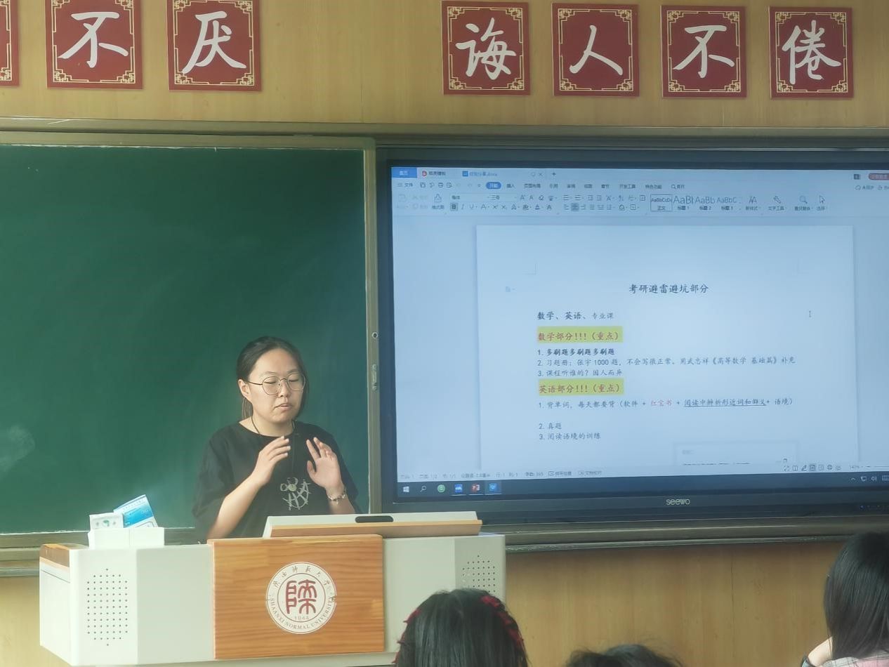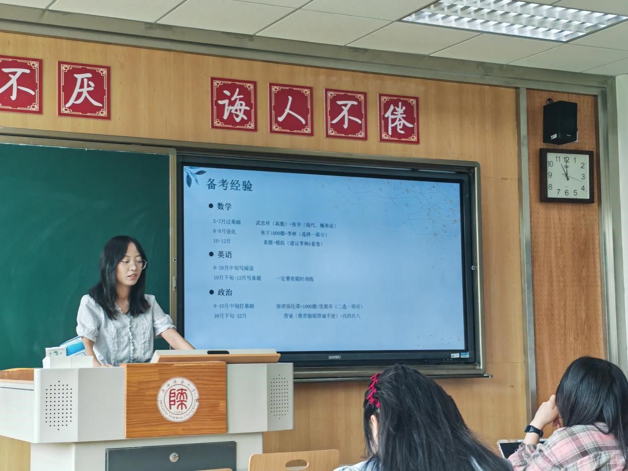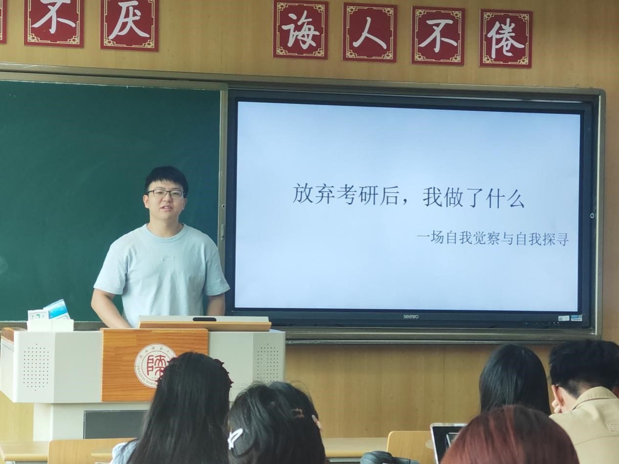 考研保研的学长学姐们根据自己的复习备考经验,为我们总结出了不同科目的学习方法以及备考时的避雷指南,聚焦考研流程、高效复习策略和院校选择技巧,为有意深造的同学提供了实用建议。活动中,优秀学长学姐通过亲身经历,讲述了他们在不同发展路径上的奋斗故事与成功经验。不仅为同学们提供了可借鉴的成长模版,也激发了大家追求梦想的信心与动力。