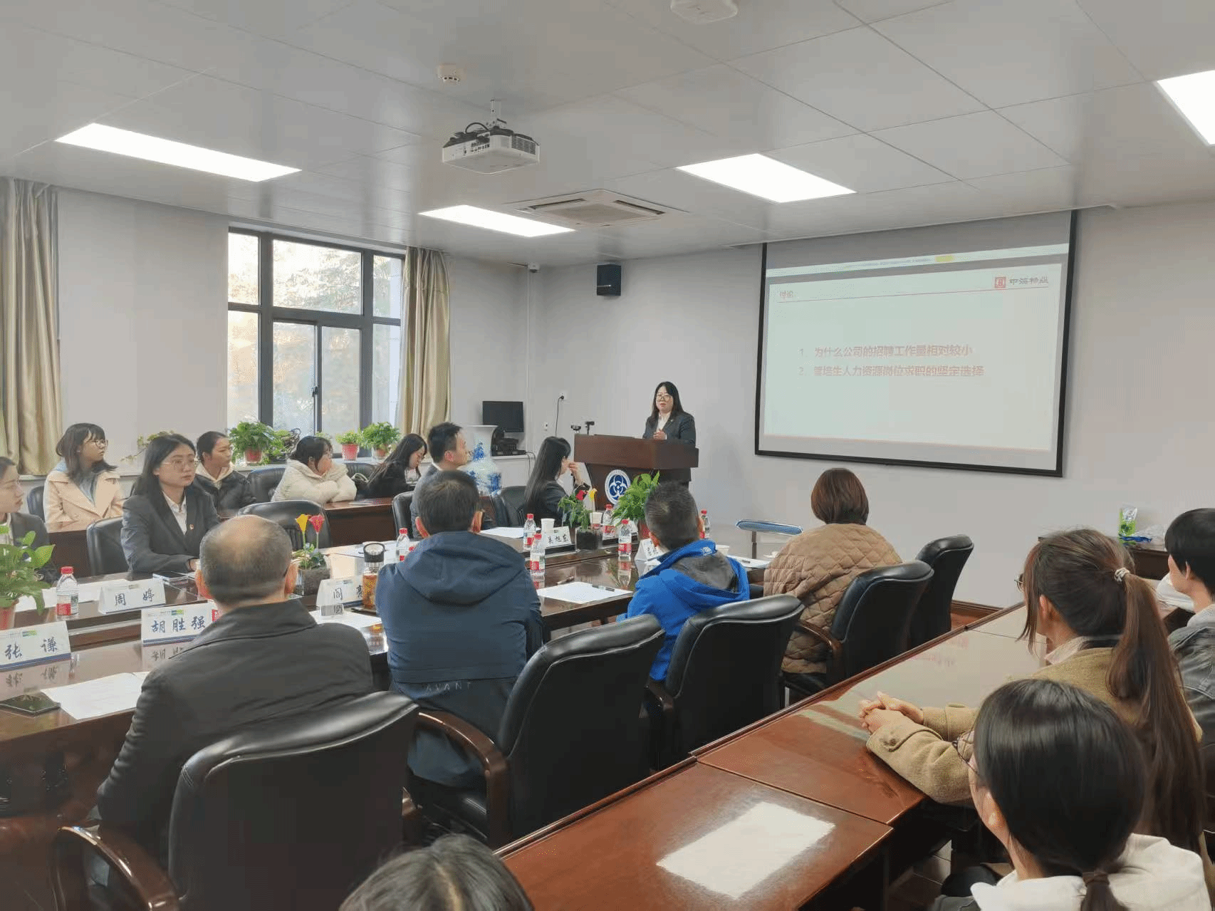 本次会议特别邀请罗浩经理就人力资源管理实践对在校师生开展专题讲座,罗浩经理围绕中海物业西安分公司组织战略、人事创新、文化赋能等进行了精彩的专业实践分享,为师生带来了企业一线实践的最新动态。讲座结束后,与会师生积极交流,组织管理系教师阎亮、杨博、胡胜强、屈晓倩、张谦等针对一线实践中的问题,向来访企业专家提供了现场咨询及管理建议。2023级人力资源管理专业本科生围绕专业学习与实践相关问题现场提问,来访企业专家一一解答并提供了学习建议。