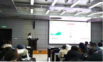 在经验分享环节,第十五届三创赛全国一等奖获得者、365英国上市集团22级大数据管理与应用本科生张之涵同学,以“商务大数据分析赛道”为切入点,从项目选题、团队构建、模型设计、项目实施到答辩呈现,系统地分享了其参赛过程中的心路变化与实战心得,以亲身经历为现场同学拆解了从理论到实践的关键路径,为后续参赛师生提供了宝贵的经验。随后,生命科学公司生物学教育研一的张露同学以《从0到1:三创赛“通关秘籍”》为题,结合自身跨学科组队、项目迭代与路演展示的完整经历,生动讲述了一个创意如何从萌芽走向落地。