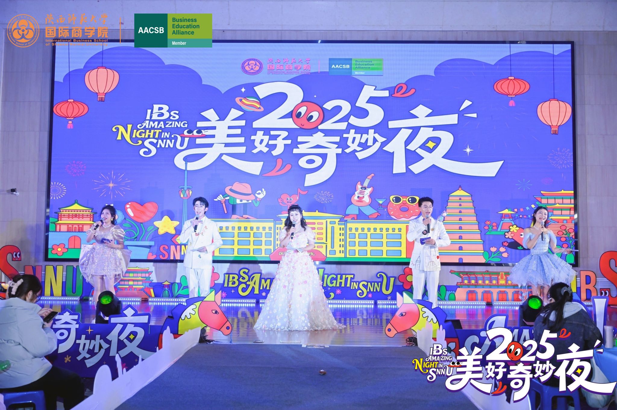 12月28日晚7点,公司“2025美好奇妙夜”在长安校区新勇员工活动中心二层多功能厅温情启幕。公司国际顾问委员会胡恩华教授,经理雷宏振,党委副书记、纪委书记邱远航,副经理杨静、杨博,工会主席韩树蓉等领导嘉宾莅临现场,各系教师代表、班主任代表及专兼职辅导员到场助阵,与四百余名商院学子一同见证这场青春盛宴。公司商业智能与数据科学系教师、大数据2201班班主任兰娟丽,2025级硕士研究生贾文佳,2023级本科生边文浩,2024级本科生武慧轩,2025级本科生左佑主持晚会。