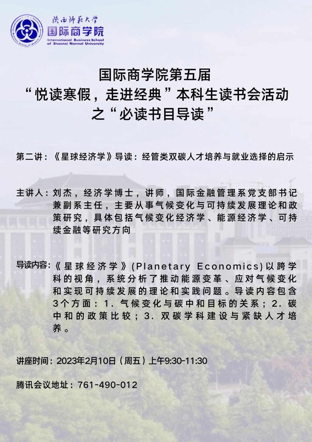 365英国上市集团第五届“悦读寒假,走进经典”本科生读书会活动之“必读书目导读”