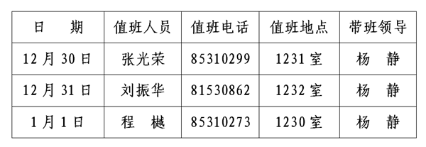 值班时间:上午:8:30—11:30,下午:14:30—17:30。